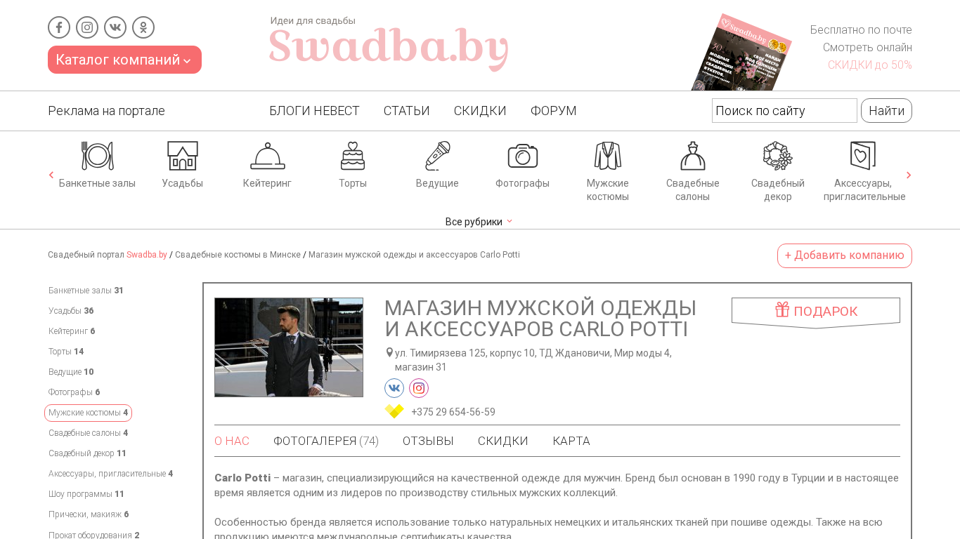 | Название / Заголовок | Магазин мужской одежды и аксессуаров Carlo Potti - Свадебные костюмы в Минске |