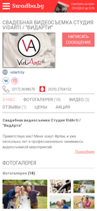 | SEO-описание | Свадебная видеосъемка Студия VidArti / "ВидАрти" - видеосъмка свадьбы в Минске с портфоли, отзывами и ценами. Адреса, контакты и отзывы. |