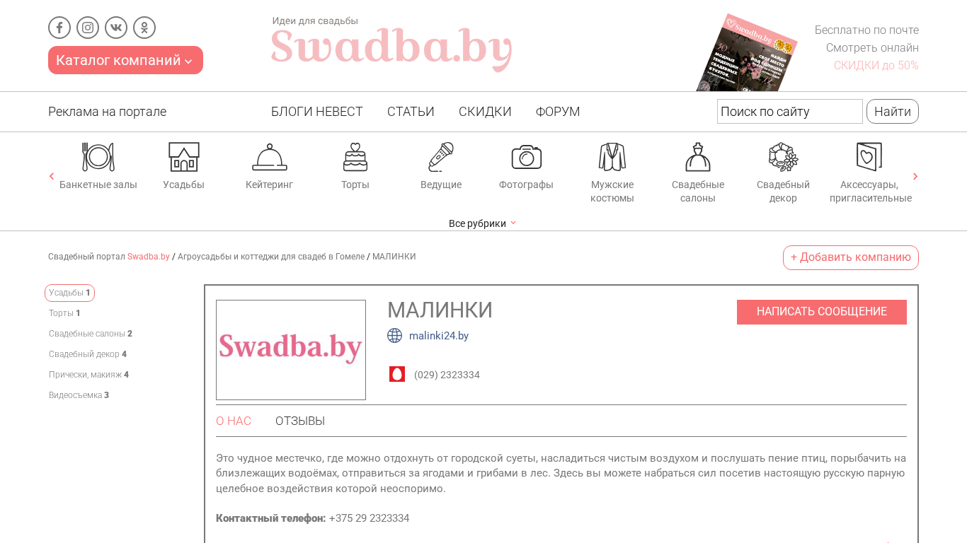 | Ключевые слова | МАЛИНКИ - Агроусадьбы и коттеджи для свадеб в Гомеле |