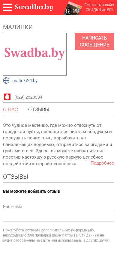 | SEO-описание | для свадьбы МАЛИНКИ - усадьба на свадьбу в Гомеле с фото, ценами и отзывами. Адреса, контакты и отзывы. |