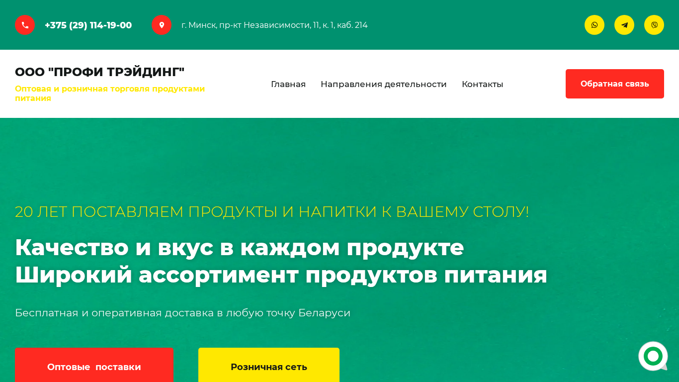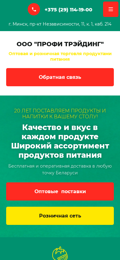 | Название / Заголовок | Оптовая и розничная торговля продуктами питания в Минске – ООО «ПРОФИ ТРЭЙДИНГ» |