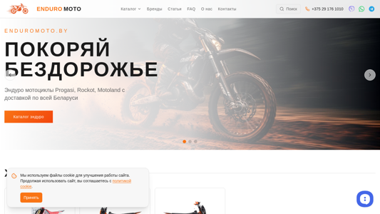 | AI-анализ | The web project ENDUROMOTO.BY is an e-commerce site for enduro motorcycles in Belarus. Brands include Progasi, Motoland, Racer, BSE, and Kayo, with delivery, warranty, and financing options. |