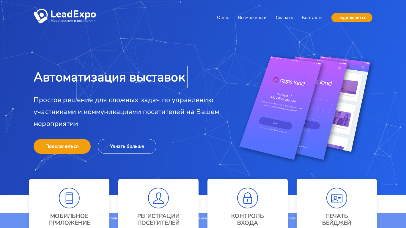 | AI-анализ | The website LeadExpo is a platform designed for managing attendees and communications at events with free admission. It utilizes cookies for optimal functionality and improvement of the service. The site features an application for managing registrations, controlling attendee access, and generating badges. Organizers can create and manage events, formulate program schedules, and maintain attendee lists through their personal account. Attendees can register for events via the mobile application or the website, and can exchange contact information with each other and event participants. Registration is available immediately upon event creation, with both omnichannel and mobile registration options. The platform also provides reporting capabilities. |