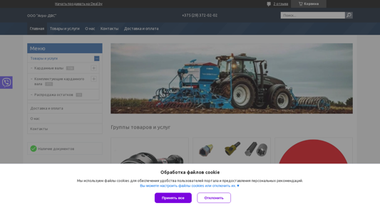 | AI-анализ | This website is an e-commerce platform for the Belarusian company "ООО "Агро-ДВС"" that offers contacts, products, and services related to caridanney valas, or caridanny wals in English. The website provides contact information, a list of products including caridanney valas, and services. The top keywords on the website include numbers starting with "375" and "372-02-02," likely phone numbers, as well as words like "наличии" (availability), "велком" (completely), "валы" (valves), "карданные" (cardan), and "цену уточняйте" (please inquire about the price). The website offers caridanney valas for various uses such as on tractors, harvesters, and seed drills, |