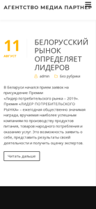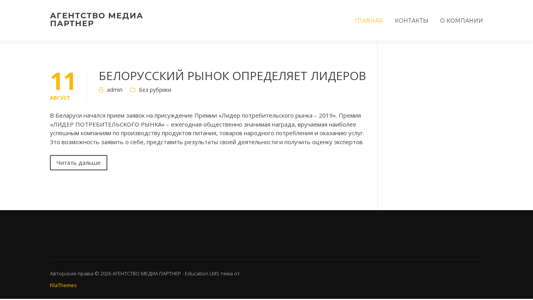 | AI-анализ | The website is for "АГЕНТСТВО МЕДИА ПАРТНЕР" (Media Partner Agency), a company based in Belarus. It informs about the "Лидер потребительского рынка" (Leader of Consumer Market) award, an annual public prize given to successful companies in the production of food, consumer goods, and services. The website provides details about the application process, the award's significance, and previous winners. It also includes contact information for the company, located in Minsk, Belarus, with a postal address, phone numbers, and email address. The website is using an Education LMS theme from FilaThemes. |