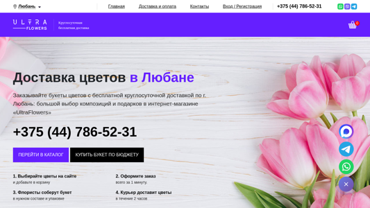| Название / Заголовок | Доставка цветов в Любане – Заказать букеты цветов с круглосуточной бесплатной доставкой по г Любань | Интернет-магазин «Ultra Flowers» |