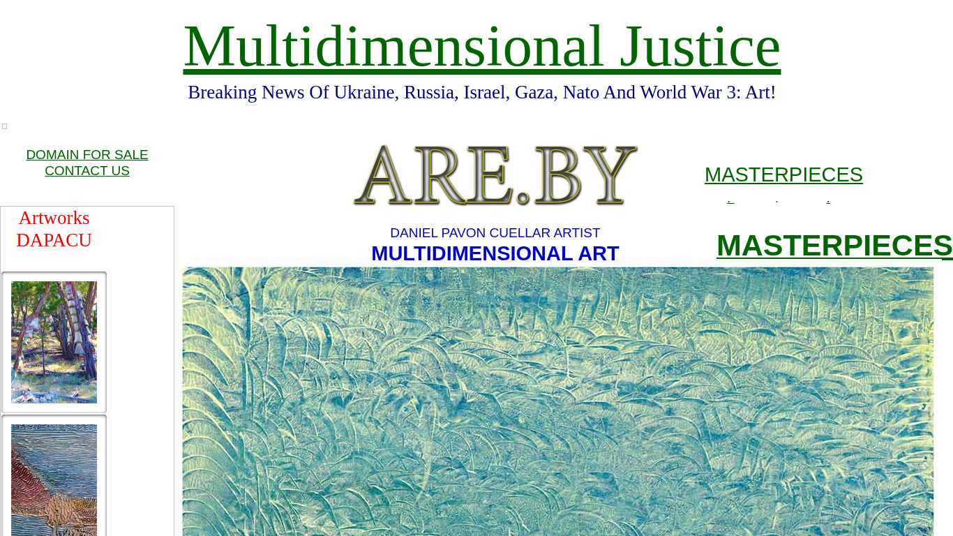 Портал "Британская галерея искусства" посвящен демонстрации многомерных художественных работ известных мастеров Даниэля Павона и Куэллы. Заголовок и описание подчеркивают важность наблюдения за и погружения в изысканное искусство, предполагая глубокое восхищение представленными шедеврами. Уведомление о продаже домена и упоминание о разрывных новостях по различным глобальным конфликтам указывают на потенциальное наличие дополнительного контента.