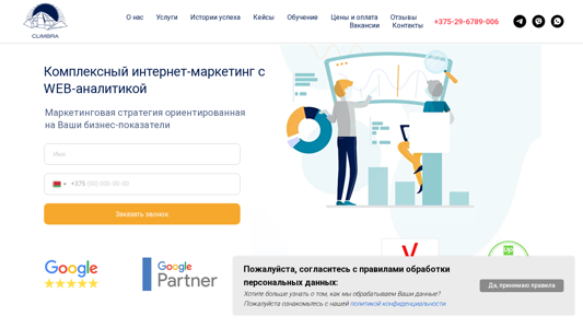 | SEO-описание | Специалисты Climbra знают как вашему сайту эффективно получать клиентов и прибыль. К вашим услугам полный комплекс инструментов web-маркетинга! |