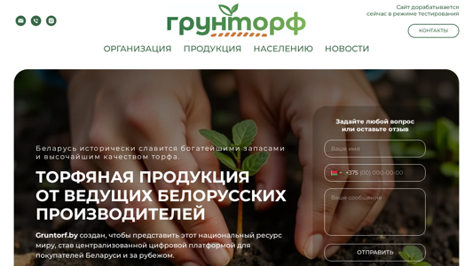 | SEO-описание | Беларусь исторически славится богатейшими запасами и высочайшим качеством торфа. Gruntorf.by создан, чтобы представить этот национальный ресурс миру, став централизованной цифровой платформой для покупателей Беларуси и за рубежом. Мы консолидируем предлож |