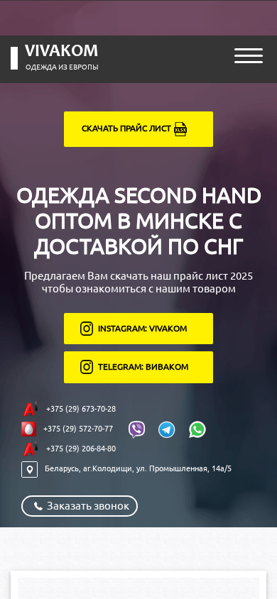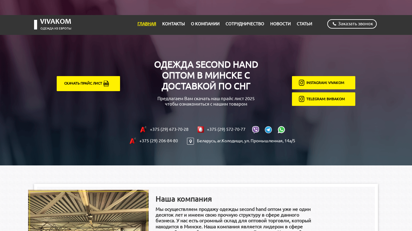 | Название / Заголовок | Одежда, обувь оптом. Секонд-хенд в Минске. Низкие цены. Виваком |