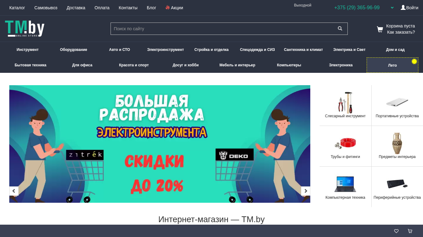 | SEO-описание | Онлайн площадка по продаже инструмента, бытовой техники, оборудования, сантехники, электроинструмента, товаров для стройки. Доставка в любую точку РБ — TM.by |