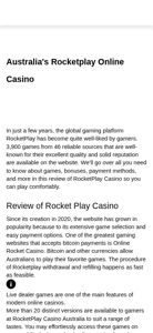 | SEO-описание | Australia's Rocketplay Online Casino |