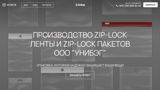 | SEO-описание | Пакеты зип лок с замком купить оптом | Герметичность, многофункциональность и удобство продукции | Компания "УниБэг" - изготовление zip-lock пакетов и лент | Остались вопросы? Звоните +375 (29) 608 52-23 |