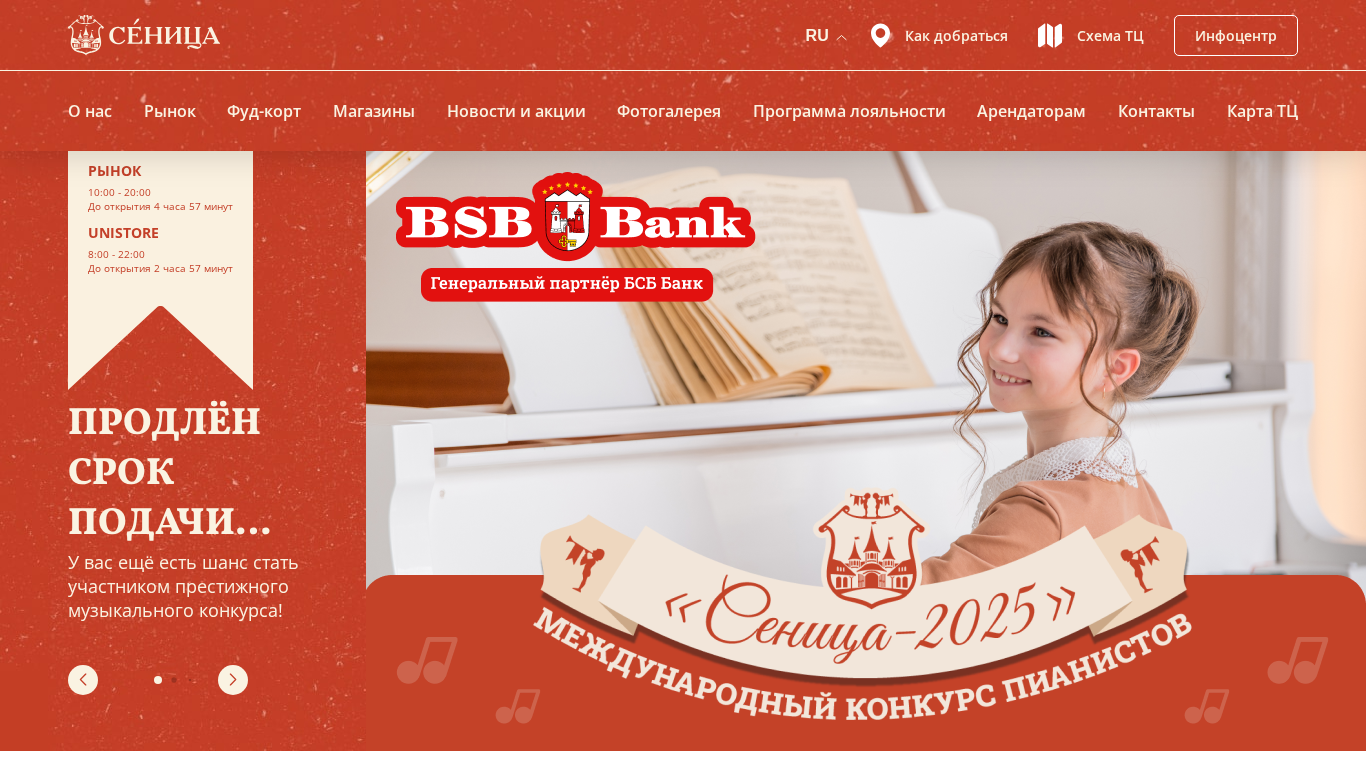 | SEO-описание | ТЦ Сеница – это доступный торговый центр с современным продуктовым рынком, дискаунтером, торговой галереей и разнообразным фуд-кортом. |