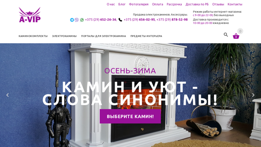 | SEO-описание | Ищете где купить электрический камин в Минске? Большой выбор электрокаминов в нашем интернет-магазине. ✔ Рассрочка ✔ 250+ моделей ✔ Звоните ☎ 8(029)652-26-36. |