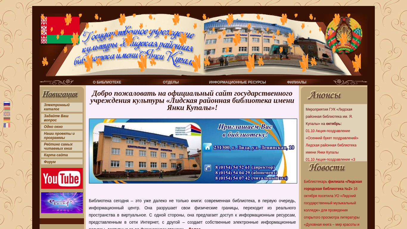 | SEO-описание | Официальный сайт Лидской районной библиотеки имени Янки Купалы |