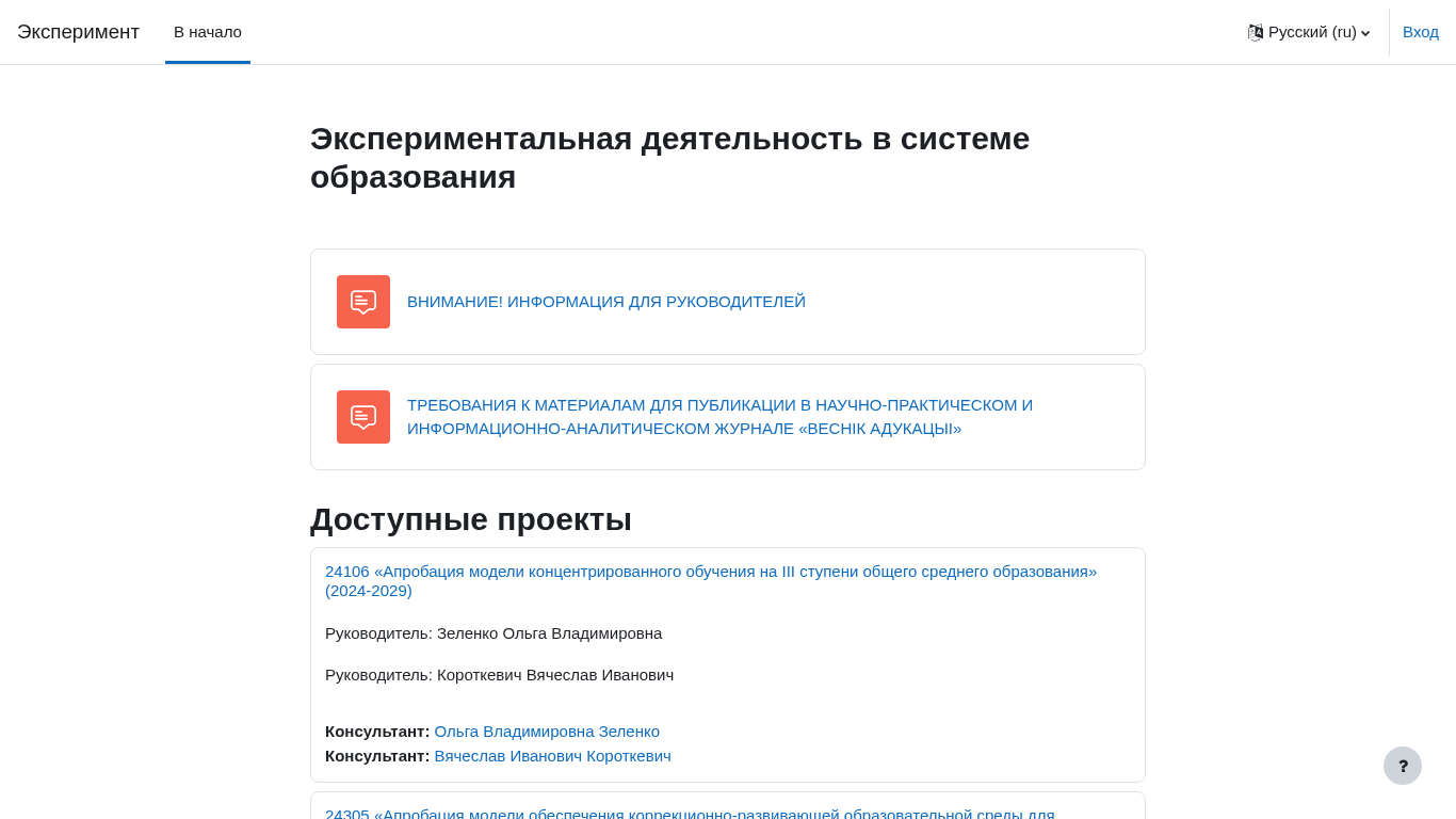 | SEO-описание | Согласно Инструкции о порядке осуществления экспериментальной и инновационной деятельности в сфере образования, утвержденной постановлением Министерства образования Республики Беларусь от 01.09.2011 № 251 (в ред. постановления Министерства образования Республики Беларусь 23.08.2022 № 276), экспериментальная деятельность представляет собой процесс проверки результатов фундаментальных и прикладных научных исследований в сфере образования в целях определения эффективности и целесообразности их массового использования посредством реализации экспериментального проекта.