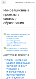 | Название / Заголовок | Инновационные проекты в системе образования |