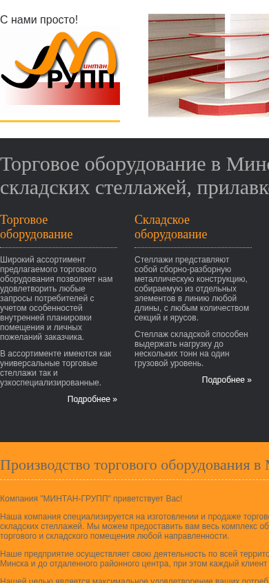 | SEO-описание | Производство торгового оборудования в Минске, изготовление стеллажей и прилавков для магазинов, а также торговых и складских стеллажей в Минске |