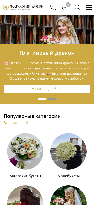 | SEO-описание | ⭐ Быстрая доставка 💐 цветов: Авторские букеты, Монобукеты 💐, Сопутствующие товары, Свадебные букеты, Композиции в коробках, Композиции. Доставка свежих цветов в Орше ☎️ +375 (29) 512-10-93 |