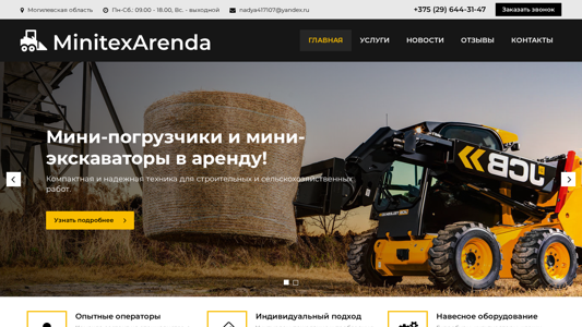 | SEO-описание | Оказываем услуги по аренде мини-эскаваторов и мини-погрузчиков в Могилевской области по самым низким ценам. |