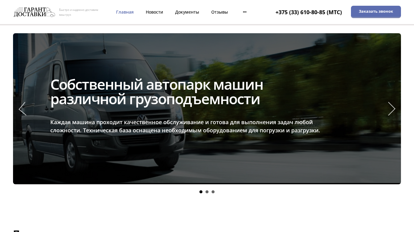| SEO-описание | Доставка груза по РБ. Грузоперевозки. Доставим ваш груз быстро и надежно. Наша компания гарантирует надежность транспортировки и сохранность перевозимого груза. Осуществляем междугородние грузоперевозки по всей территории Республики Беларусь. |