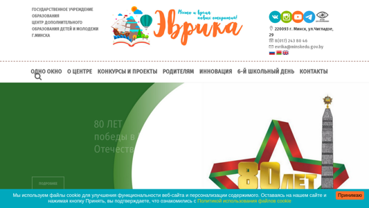 | AI-анализ | --- The website <evrika.minsk.edu.by> is a Belarusian educational platform hosting various projects, initiatives, and resources. It includes information on events, achievements, and plans of the organization, as well as sections on youth anti-drug programs, animal welfare, and safety guidelines for parents and children. The website also features a calendar of administrative work hours, contact information for higher-level organizations, and administrative procedures with relevant documents. Users can submit electronic requests and learn about the center's anti-corruption policy. The website offers various programs, such as "Мы разные – мы вместе," "Звёздный поход," "Зелёная школа," and "ЭКОДАР," along with detailed information on their positions, protocols, and projects. Additionally, the website provides rules for joining interest-based organizations, details on a summer recre |