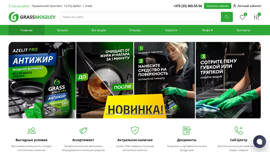 | SEO-описание | Фирменный магазин ✅ GRASS - более 2000 товаров бытовой химии, авто химии, клининга, автокосметики в Могилеве. Инфо по тел ☎️ +375 (33) 365-55-56 |