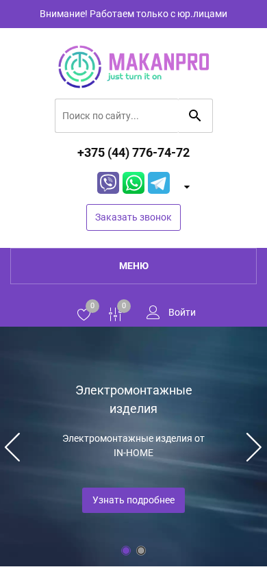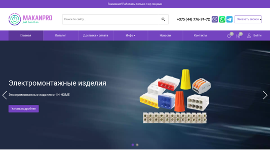 | SEO-описание | Компания MAKANPRO - поставщик электрики ведущих производителей в Беларуси по оптовым ценам, большой выбор осветительных приборов и электрического оборудования от первого поставщика. |