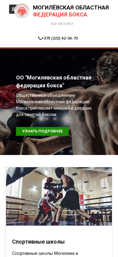 | SEO-описание | Общественное объединение Могилевская областная федерация бокса приглашает юношей и девушек Могилева и Могилевской области стать членом команды по боксу. Школы бокса и адреса. |