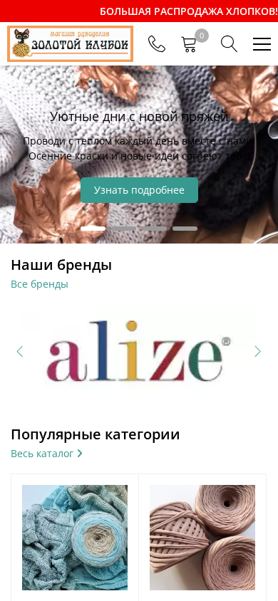| SEO-описание | Купить пряжу alize, Drops, Пехорка и других изготовителей можно в нашем интернет-магазине. Акутальные цены и широкий выбор пряжи, спиц, товаров для рукоделия. Акции и скидки нашим клиентам! |