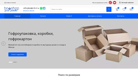 | SEO-описание | Cклад-магазин коробок, лотков и контейнеров различного назначения в Минске: для переезда, документов, пиццы, доставки еды и тд. Печать уникальных коробок с логотипом в кратчайшие сроки. Доставка по Минску. |