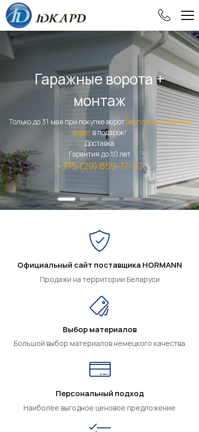 | SEO-описание | В компании Юкард можно заказать промышленные, гаражные, секционные, роллетные ворота, решетки и роллетные системы. Автоматику для въездных ворот и шлагбаумов. Произовдство, продажа и монтаж ворот у официального партнёра Hörmann с доставкой по Гродненской области. |