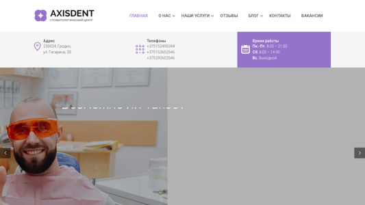 | Название / Заголовок | Стоматологический кабинет АксисДент. Стоматология в Гродно |