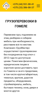 | SEO-описание | Грузоперевозки в Гомеле и области. ⏩ Перевозка грузов с грузчиками 【недорого】. ☎️ Звоните +375 (44) 551-08-41. Свой автопарк ⭐️. Работаем 24/7! ⚡ 1000+ довольных клиентов. |