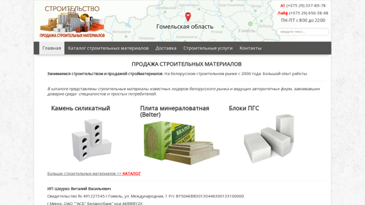 | SEO-описание | Продажа строительных материалов. Строительство и доставка строительных материалов по Гомелю и Гомельской области. ИП Шкурко Виталий Васильевич |