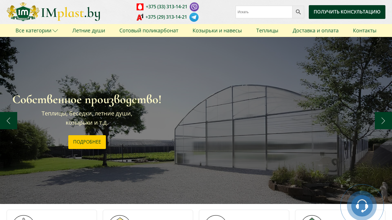 | SEO-описание | Теплицы, парники и другие товары для дачи и сада в интернет-магазине Импласт. Приятные цены. Качественный сервис. Доставка по РБ |