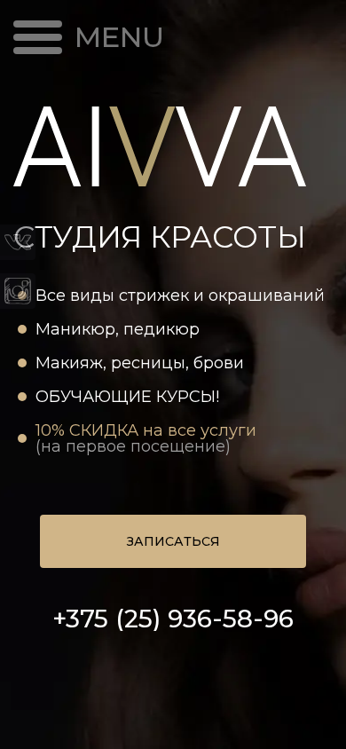 | SEO-описание | СТУДИЯ КРАСОТЫ AIVVA - Все виды стрижек и окрашиваний, маникюр,педикюр, макияж, ресницы, брови. ОБУЧАЮЩИЕ КУРСЫ! |
