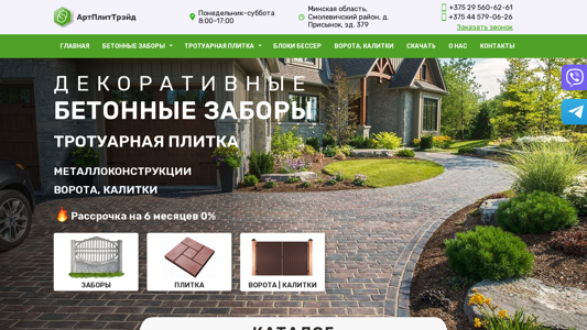 | Название / Заголовок | Производство тротуарной плитки и бетонных заборов в Минской области | ЧПУП «АртПлитТрэйд» |