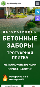 | SEO-описание | ЧПУП «АртПлитТрэйд» - производитель качественной тротуарной плитки и бетонных заборов в Минской области. Наша продукция отличается прочностью, долговечностью и эстетическим внешним видом. Заказывайте у нас бетонные изделия для ограждения территорий, благоустройства площадок и других целей. |