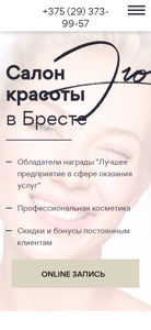 | SEO-описание | Обладатели награды "Лучшее предприятие в сфере оказания услуг". Оказываем широкий спектр услуг: парикмахерские услуги, маникюр/педикюр, уход за лицом, уход за телом и т.д. Используем только профессиональную косметику. Скидки и бонусы постоянным клиентам. |
