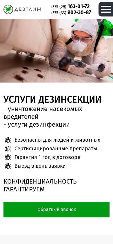 | Название / Заголовок | Дезинфекция в Беларуси: Dez-Time – надежное устранение вредителей. |
