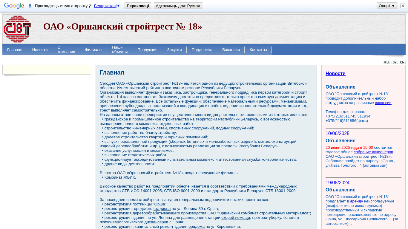 | SEO-описание | Официальный сайт ОАО "Оршанский стройтрест № 18" содержит оперативную информацию, новости |