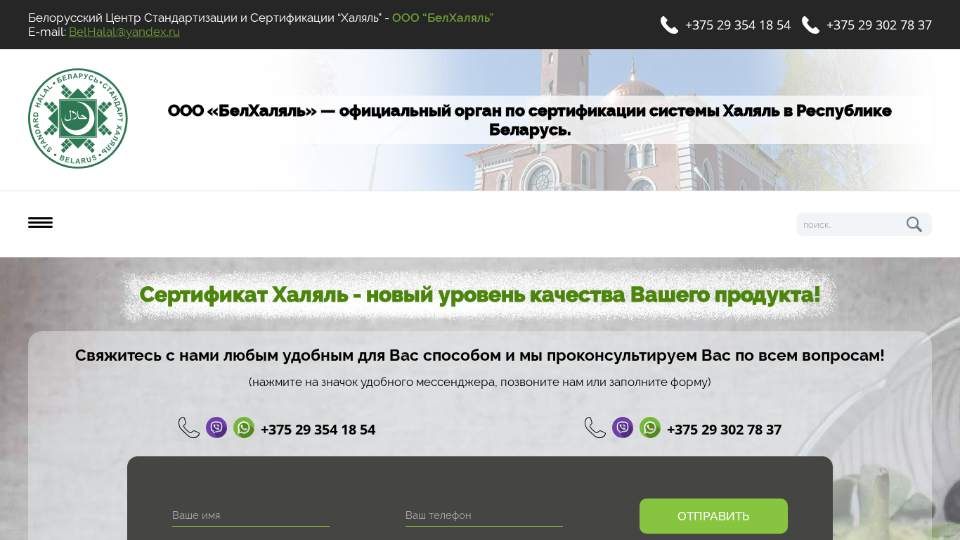 | Название / Заголовок | ООО «БелХаляль» — официальный орган по сертификации системы Халяль в Республике Беларусь |