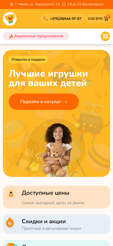 | SEO-описание | Откройте для себя интернет-магазин Kupit-Igrushku.by – место, где детские мягкие игрушки превращают каждый день в сказку. Широкий ассортимент качественных и безопасных игрушек, быстрая доставка по Беларуси и выгодные акции. Закажите онлайн и подарите вашему ребенку частичку волшебства! |
