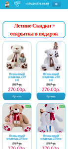 | SEO-описание | Купить плюшевых медведей в Минске с доставкой по Беларуси в интернет-магазине kupit-medvedya.by ⭐ Большие мягкие плюшевые мишки - идеальный подарок для ваших близких ⭐ 5 лет на рынке. |