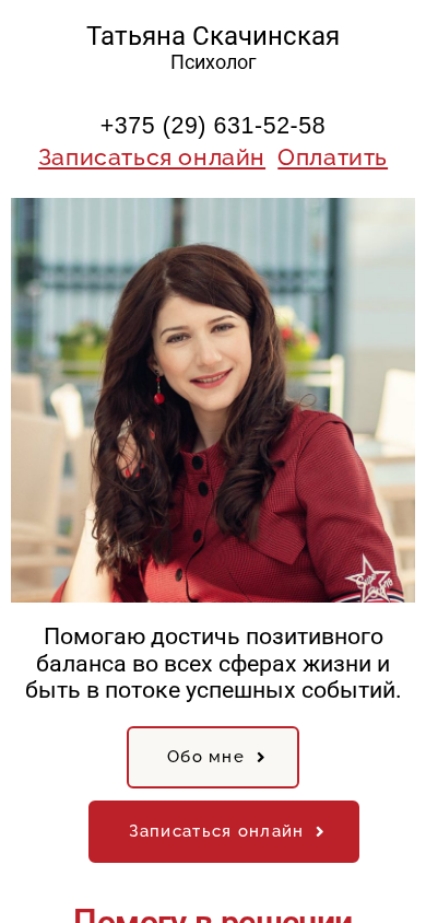 | SEO-лексика | записаться психотерапии татьяна скачинская консультацию обо мне 375 631-52-58 онлайн facebook оплатить контакты достичь баланса сферах жизни когнитивно-поведенческой ассоциация психолог |