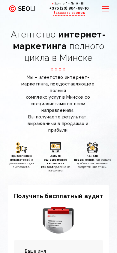 | Название / Заголовок | Агентство интернет маркетинга SEOLI в Минске |