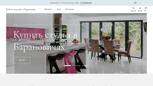 | SEO-описание | Корпусная и мягкая мебель под заказ. Кухни, шкафы-купе, прихожие, столы, стулья, диваны в Барановичах. Рассрочка, доставка, гарантия. |