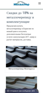 | SEO-описание | Металлочерепица в Борисове по низким ценам. Полная комплектация. Беспроцентная рассрочка. Замер, доставка. Водосточка, софит, сайдинг, профнастил. |